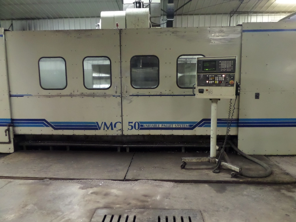Komo VMC 50/160, 160"x32"x32", 3500RPM, CAT50, Fanuc 16MB, Coolant Thru Spindle