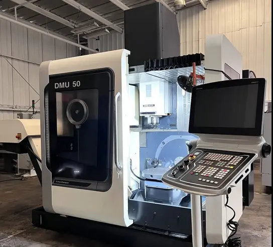 2016 DMG MORI DMU 50, 5-axis vertical machining center, used condition. Specs: X19.7", Y17.7", Z15.7", 20HP, 15000 RPM, 30 ATC, CAT-40 taper. Siemens 840D Control, Ideal for precision manufacturing and complex components.